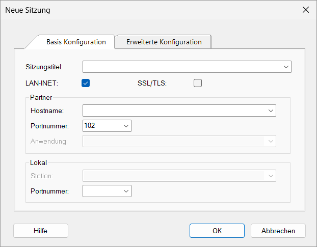 Die Eingabemöglichkeiten im Tab Erweiterte Konfiguration sind bei LAN INET die gleichen wie im Format RFC1006 (siehe „Erweiterte Optionen einer Sitzung“).