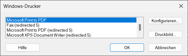 - Markieren Sie in der angezeigten Liste der Windows-Drucker den gewünschten Drucker, der dann zum Standard-Drucker definiert wird.