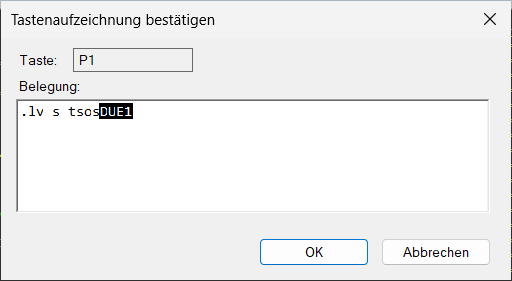 [DUE]werden ebenfalls aufgezeichnet. - Zum Beenden der Aufzeichnung wählen Sie Hilfsmittel > Programmierbare Tasten aufzeichnen > Stop.