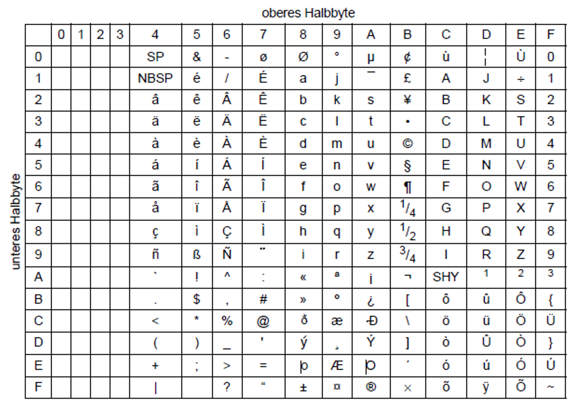 Code-Tabelle EBCDIC.DF.04 (Zeichensatz entsprechend ISO-8859-1)