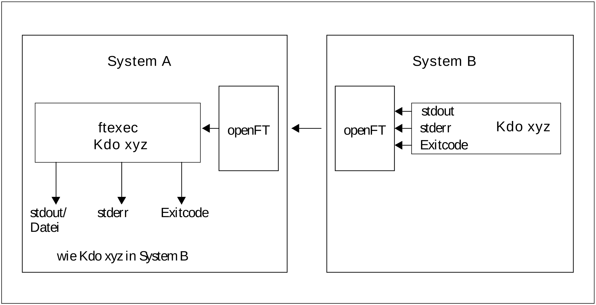 openFT ermöglicht die Ausführung von Betriebssystemkommandos auf fernen Rechnern (ftexec-Mechanismus). Dabei werden der Beendigungscode (Exitcode) und die Ausgaben des Kommandos auf stdout und stderr (entspricht SYSLST und SYSOUT in BS2000) so zurückgeliefert, als würde das Kommando auf dem lokalen Rechner ausgeführt.