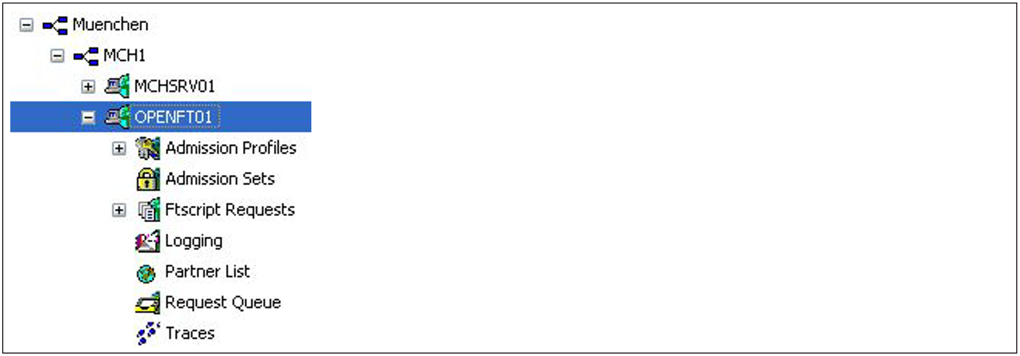 If you click on this node, all openFT instances that you are permitted to administer are displayed.