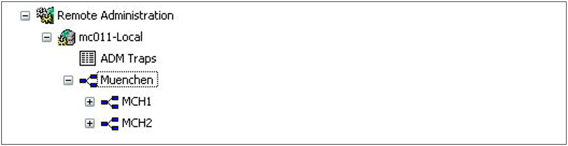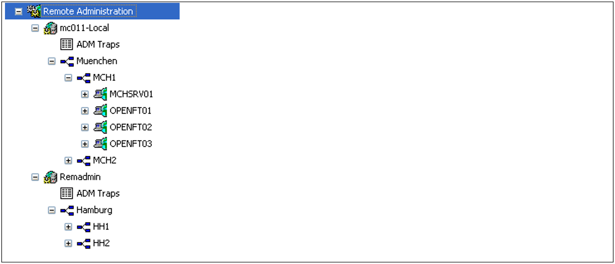 If you log in to the remote administration server locally and your user ID is configured as a remote administrator there, the object tree displays an additional icon for the local remote administration server.