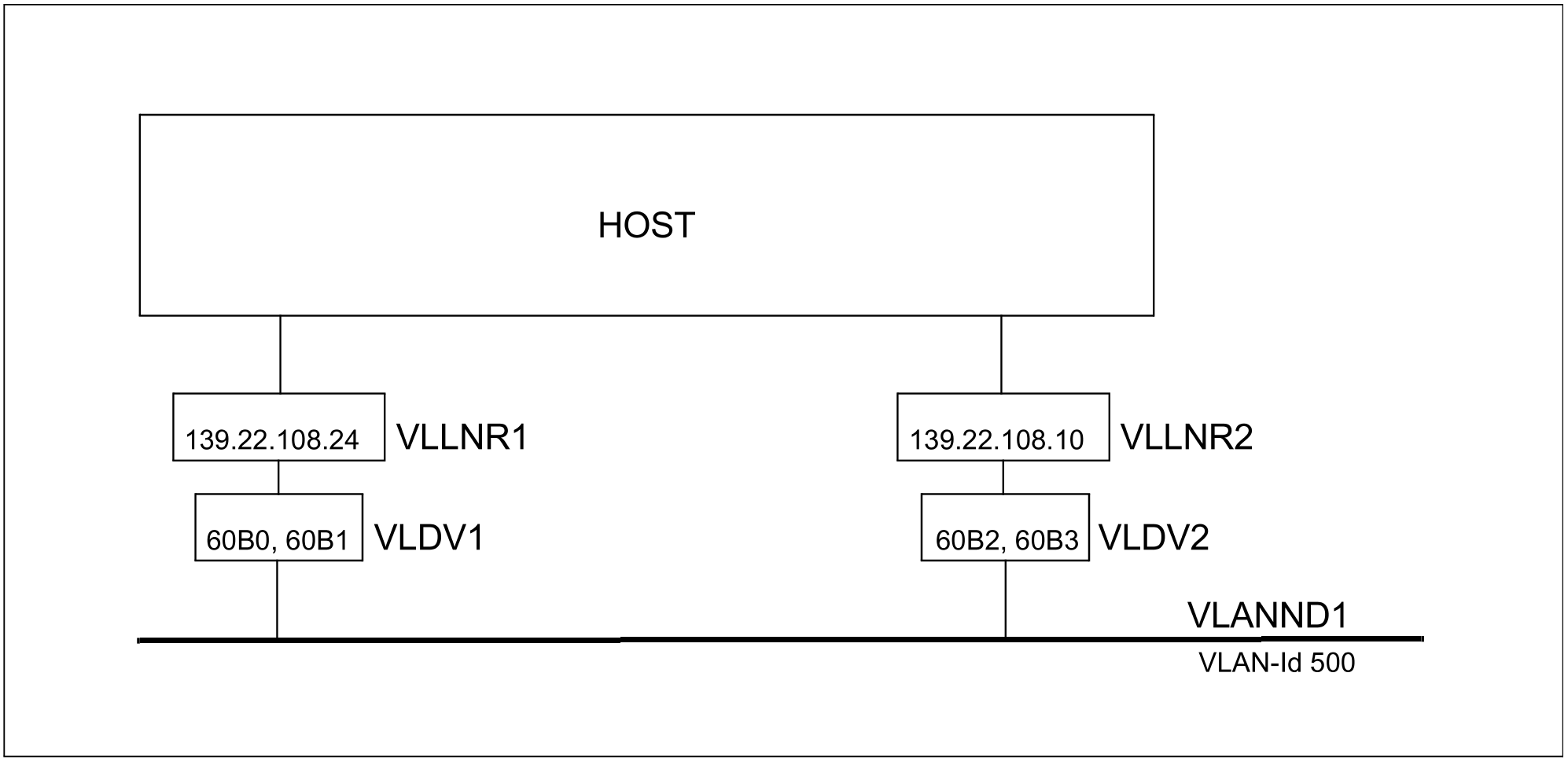 In the following a redundant VLAN configuration is presented using only BCAM commands. For this purpose two VLAN-capable device connections are available which are to be operated with tagged frame. The VLAN node is defined with VLAN-ID=500.