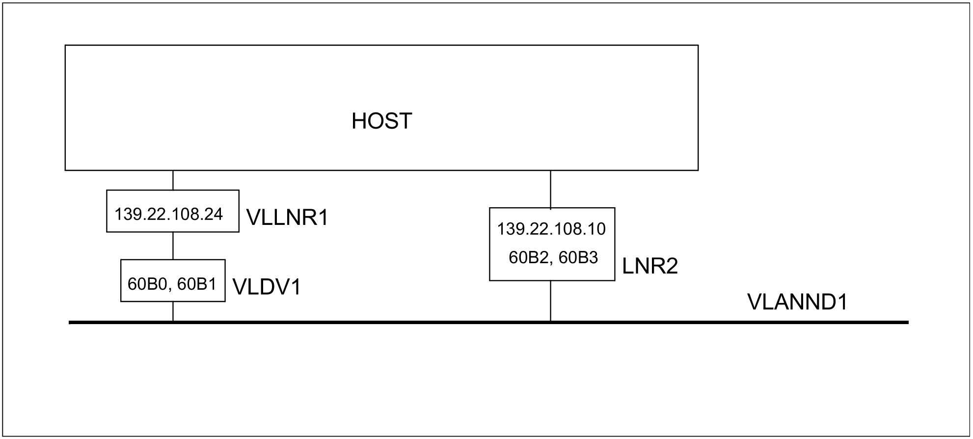 The definitions of the VLAN line and a normal line permit switching operations to be controlled by the AUTO-ROUTE-SWITCHING and ROUTE-RESWITCHING operands which become effective when the VLAN line or normal line is activated. In this example the switching of the routes is suppressed, but this can be changed later with appropriate MODIFY-VLAN-LINE commands.