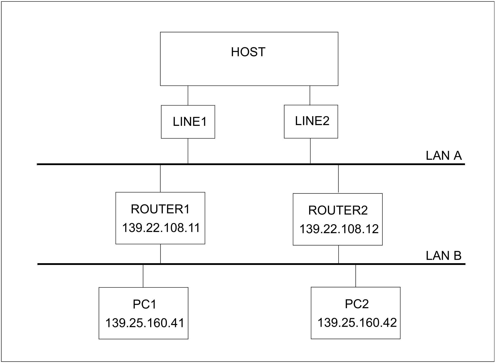 In the following example LINE1 and LINE2 are combined to form the node LAN.