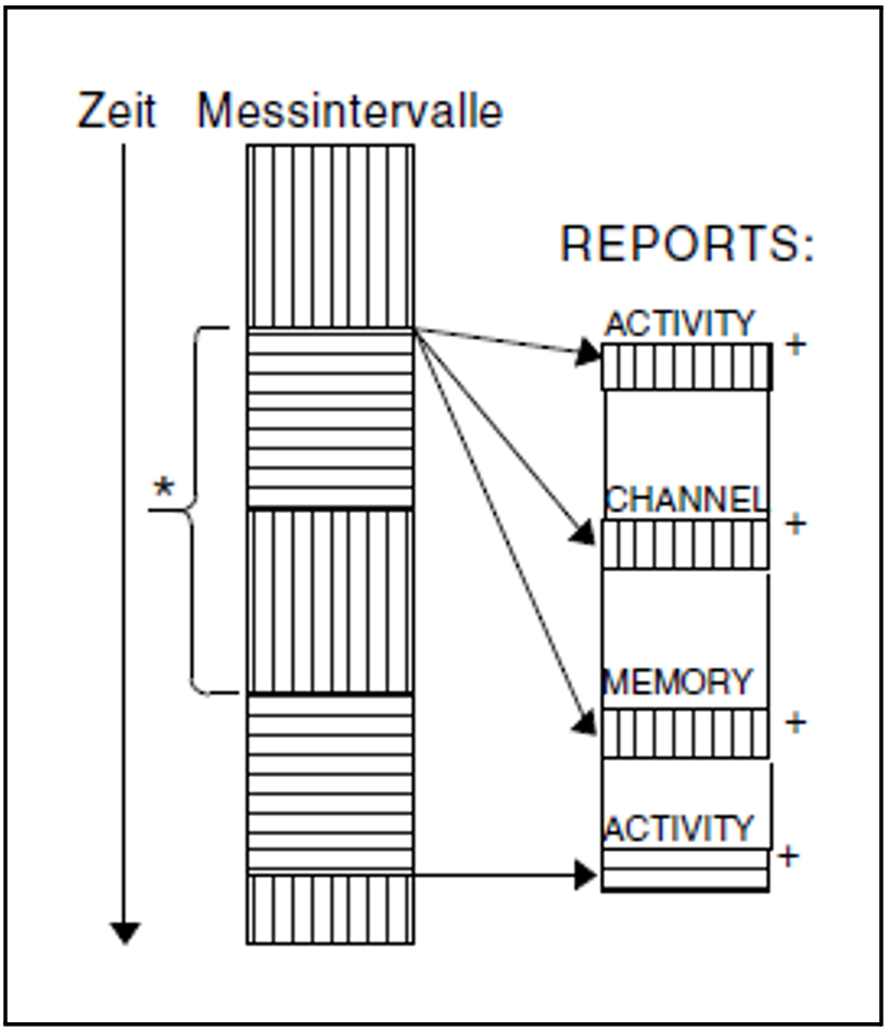 Die Sammlung der Messwerte und die Ausgabe der Reports verläuft in gleichgroßen, zeitlich versetzten Zeitintervallen.