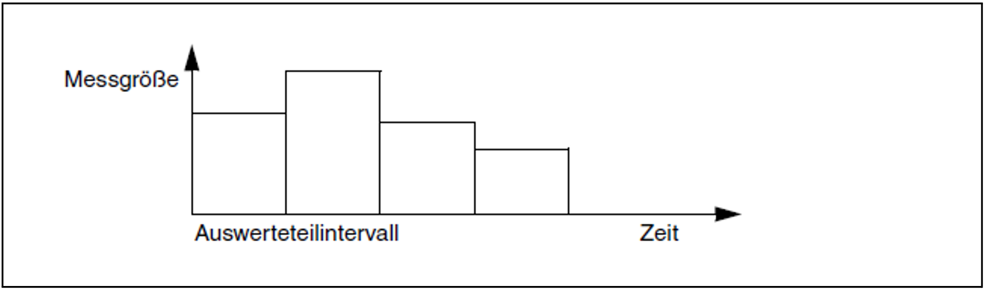 Der Benutzer kann die Unterteilung selbst steuern, indem er entweder die Anzahl oder die Länge der Auswerteteilintervalle angibt. Er kann die Einteilung auch vom SM2R1 vornehmen lassen. Dann wird der gesamte Auswertezeitraum in maximal 100 Auswerteteilintervalle unterteilt.