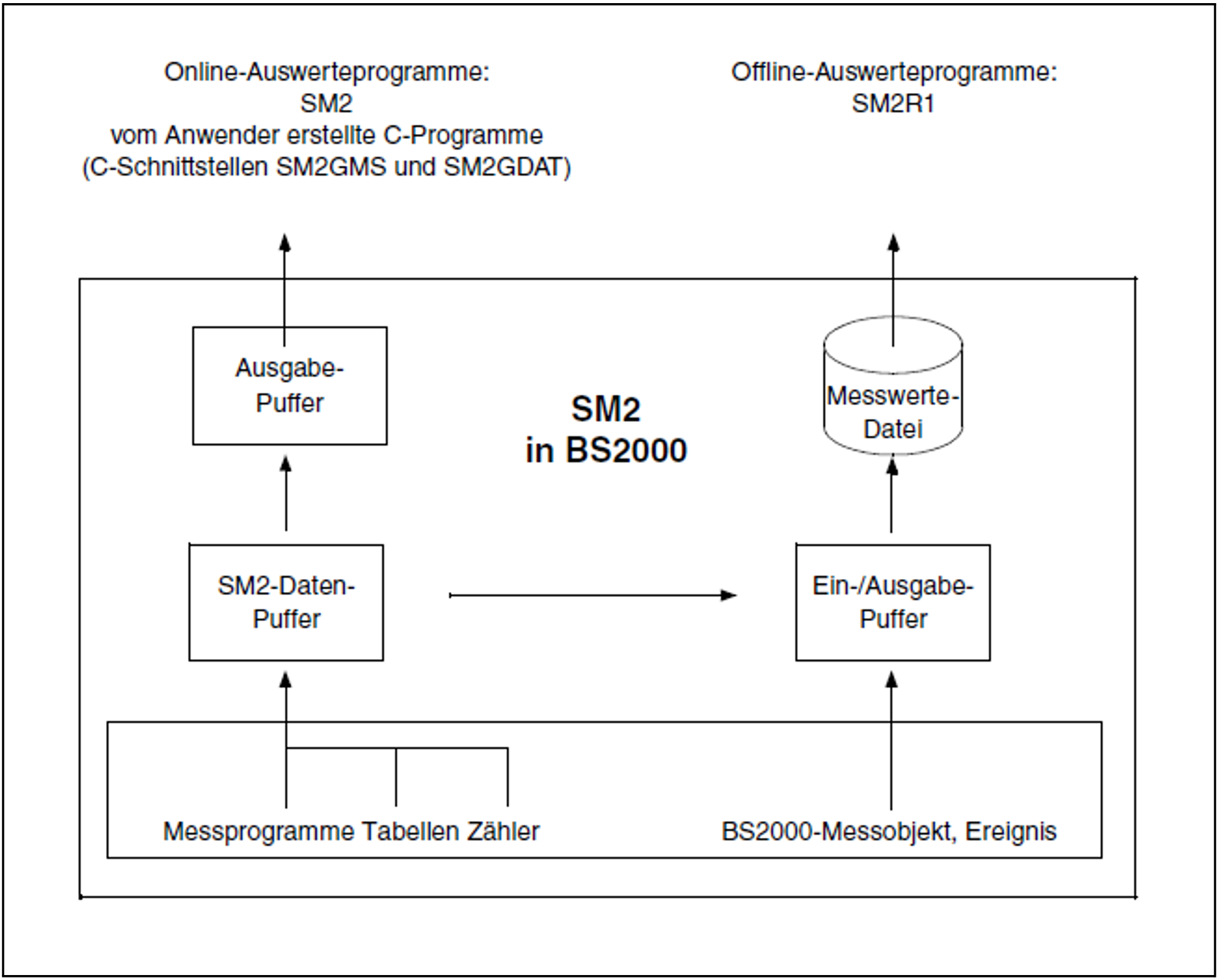Bestimmte Messwerte, z.B. die Plattenbedienzeiten, werden durch die Überwachung von Ereignissen im System (Events) ermittelt. Beim Eintreten eines Events, z.B. Start einer Ein-/Ausgabe, wird eine SM2-Routine aktiviert, die eventspezifische Daten erfasst, aus denen Messwerte berechnet werden.