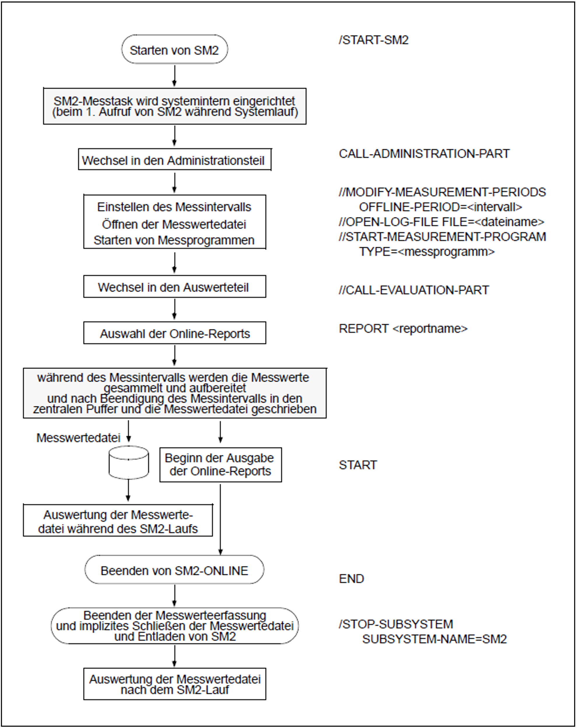 Um die Anweisungen zur Steuerung der Echtzeitüberwachung absetzen zu können, muss der privilegierte Benutzer in den Auswerteteil wechseln (per Anweisung CALL-EVALUATION-PART). Mit dem Wechsel legt der privilegierte Benutzer seinen Status als SM2-Verwalter ab.