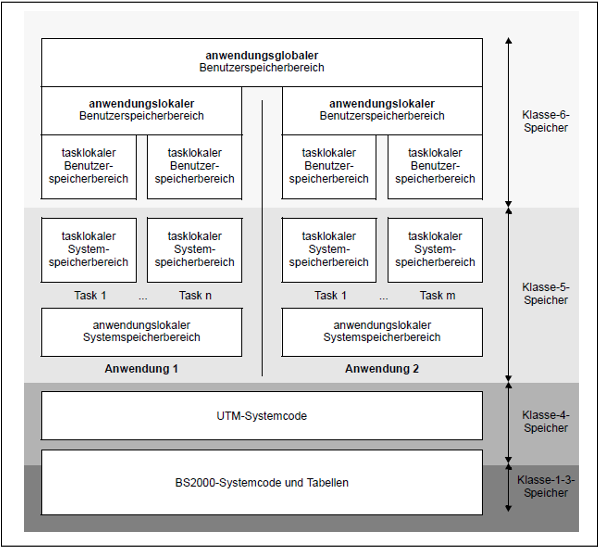 Bild 41: Speicherstruktur von UTM-Anwendungen auf BS2000-Systemen
