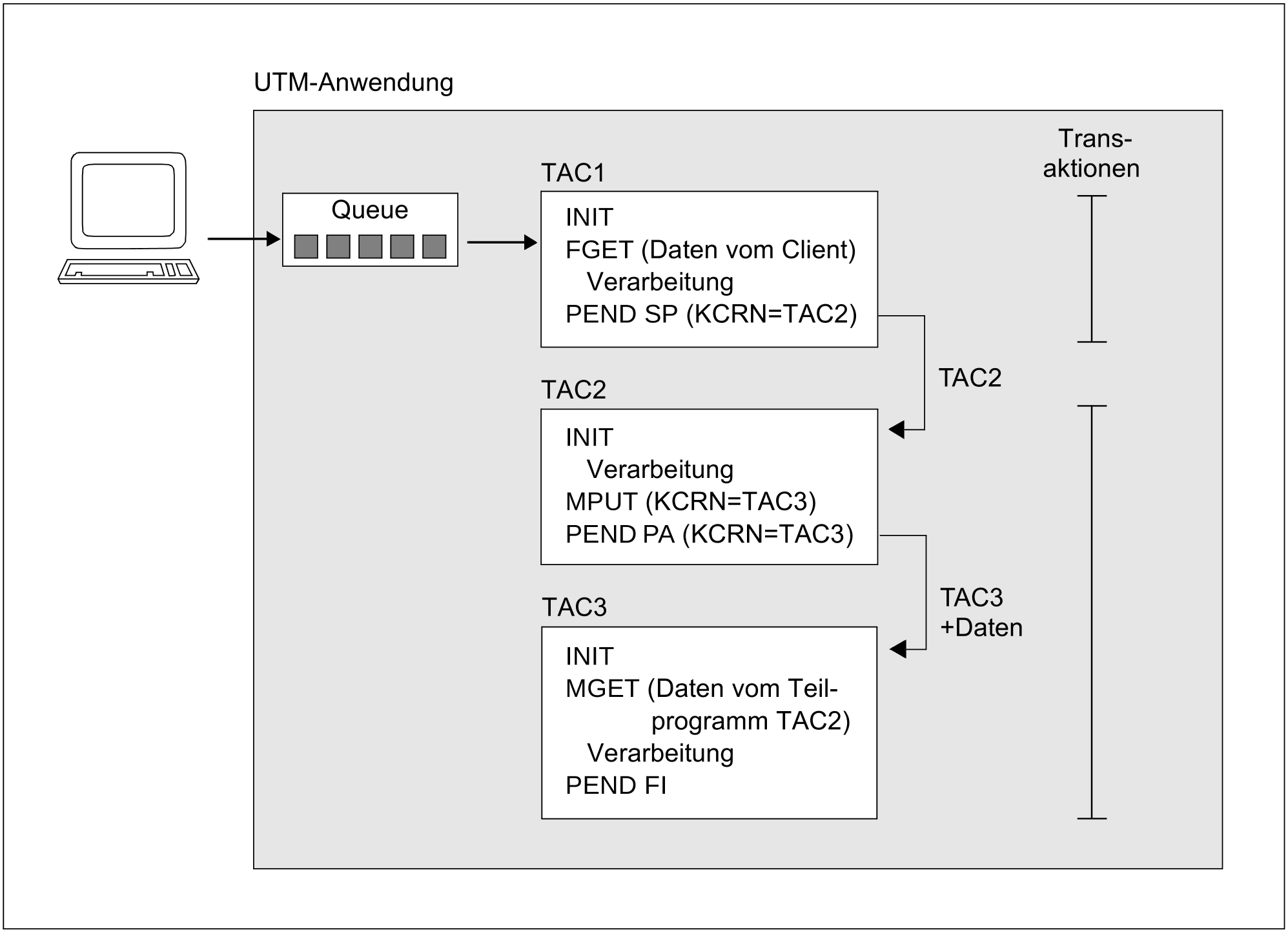 Verarbeitung einer Nachricht einer TAC-Queue und Abschluss der Transaktion | |