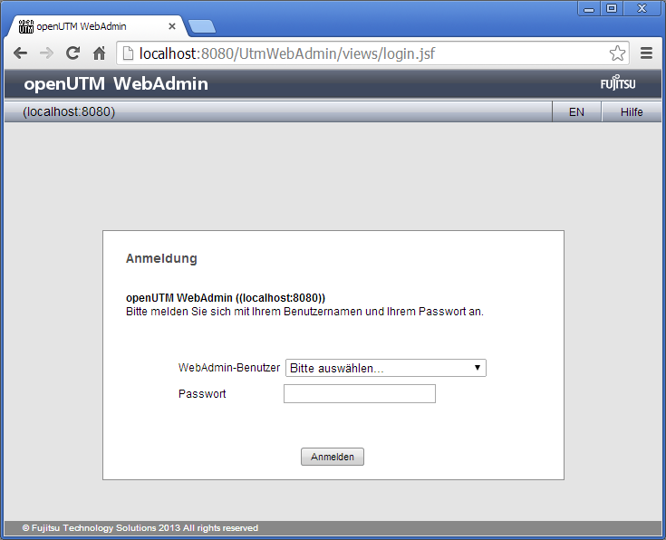 Daraufhin wird der Anmeldebildschirm von openUTM WebAdmin angezeigt: