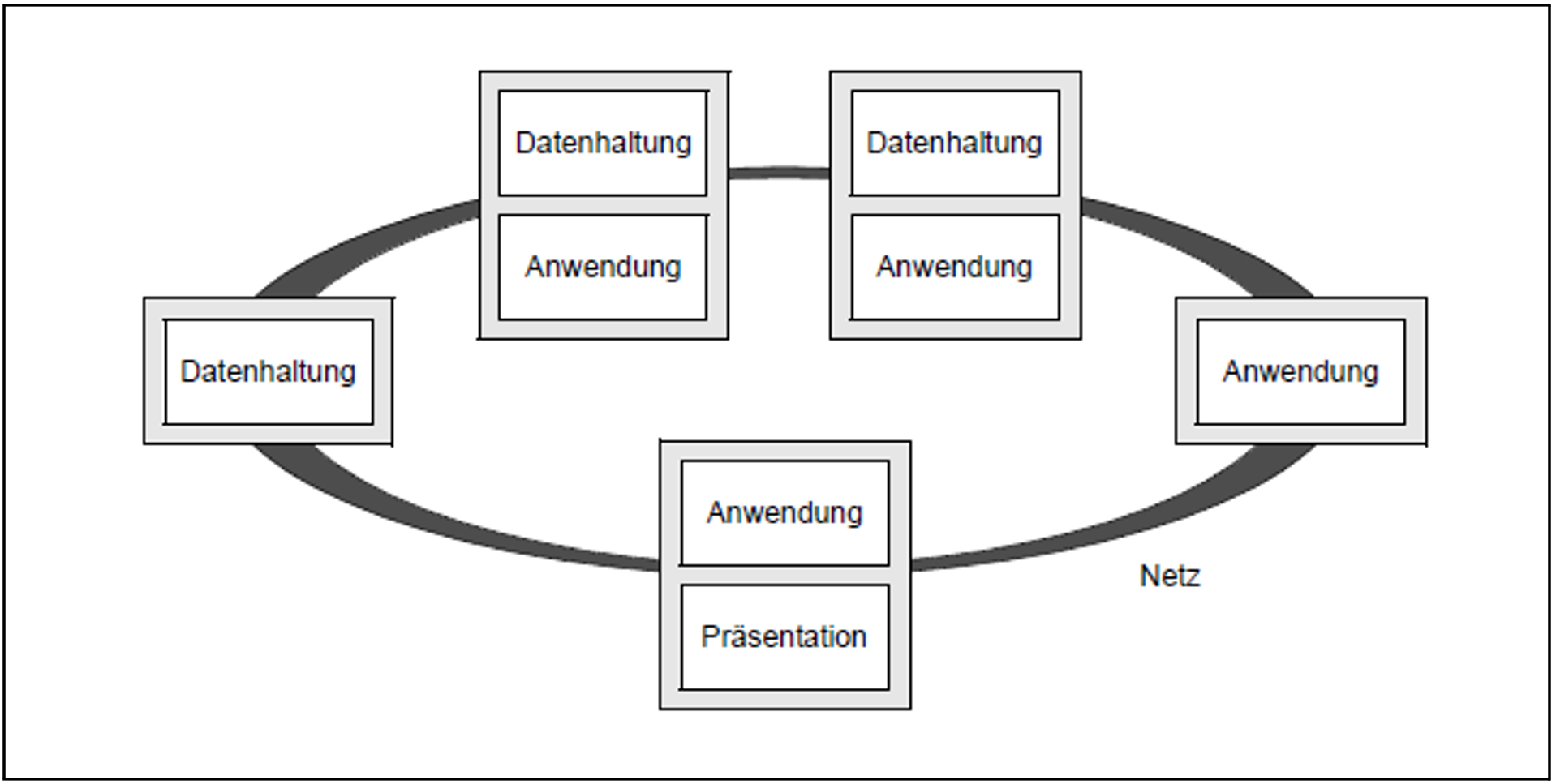 Physische Software-Tiers liegen dann vor, wenn die (logischen) Softwarekomponenten im Netz auf verschiedene Rechner verteilt sind.