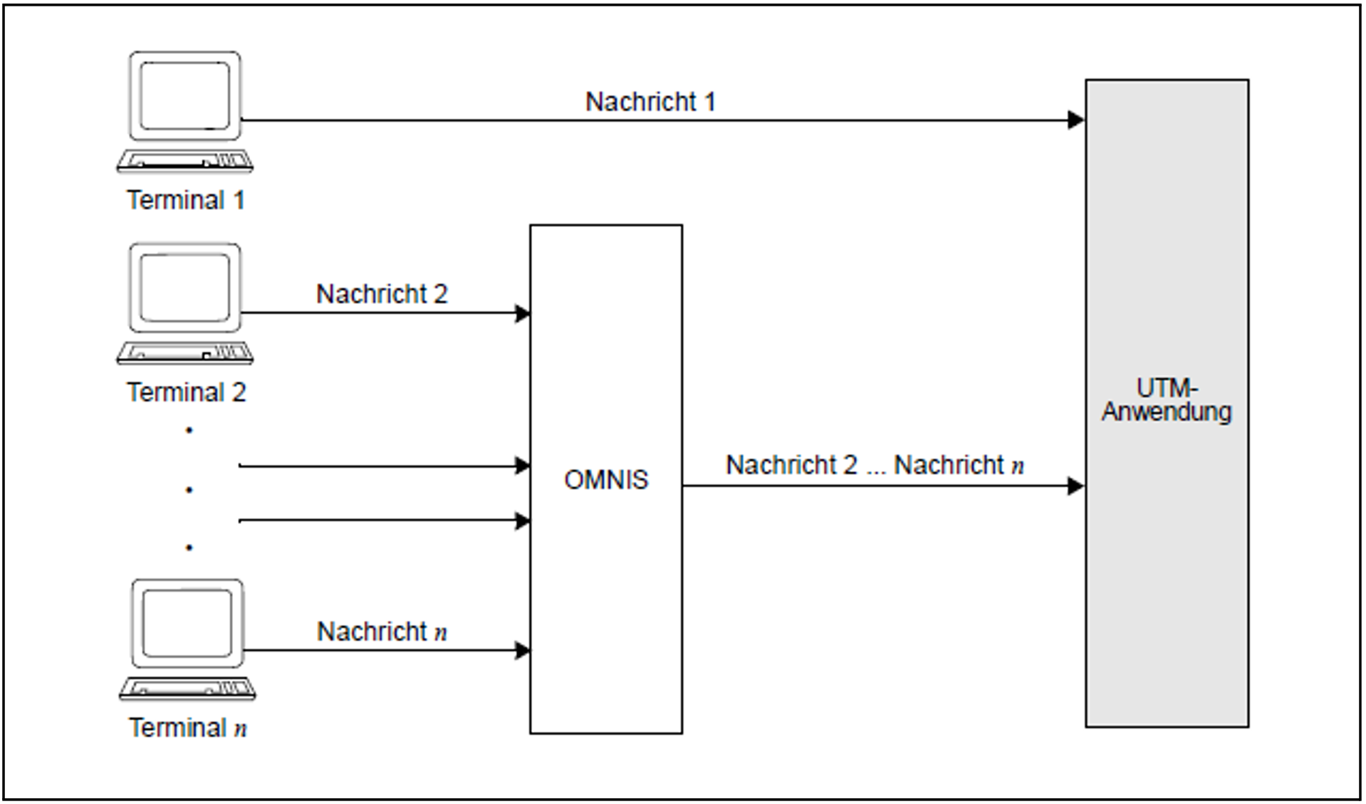Wenn Sie sowohl Terminals über direkte Verbindungen als auch Terminals über Multiplexverbindungen des Session Managers an Ihre UTM-Anwendung anschließen, ergibt sich die folgende Verteilung: