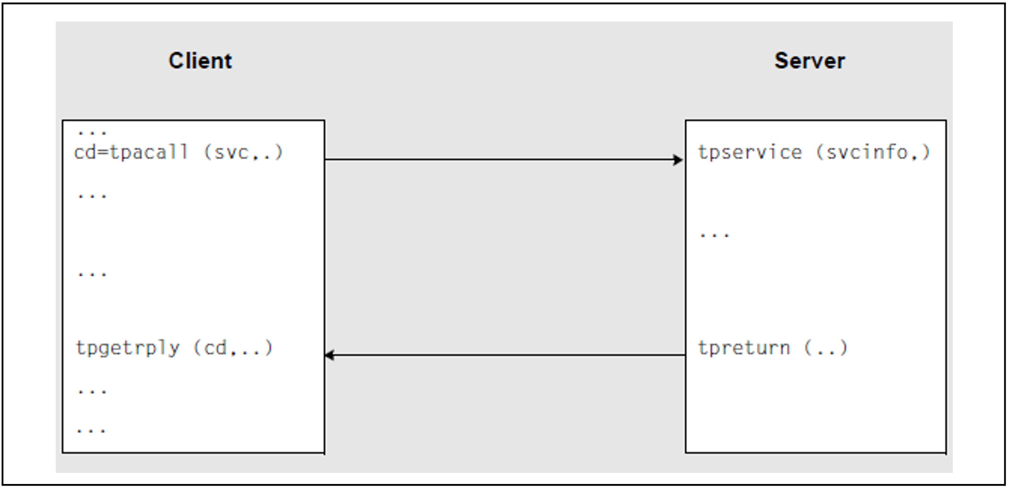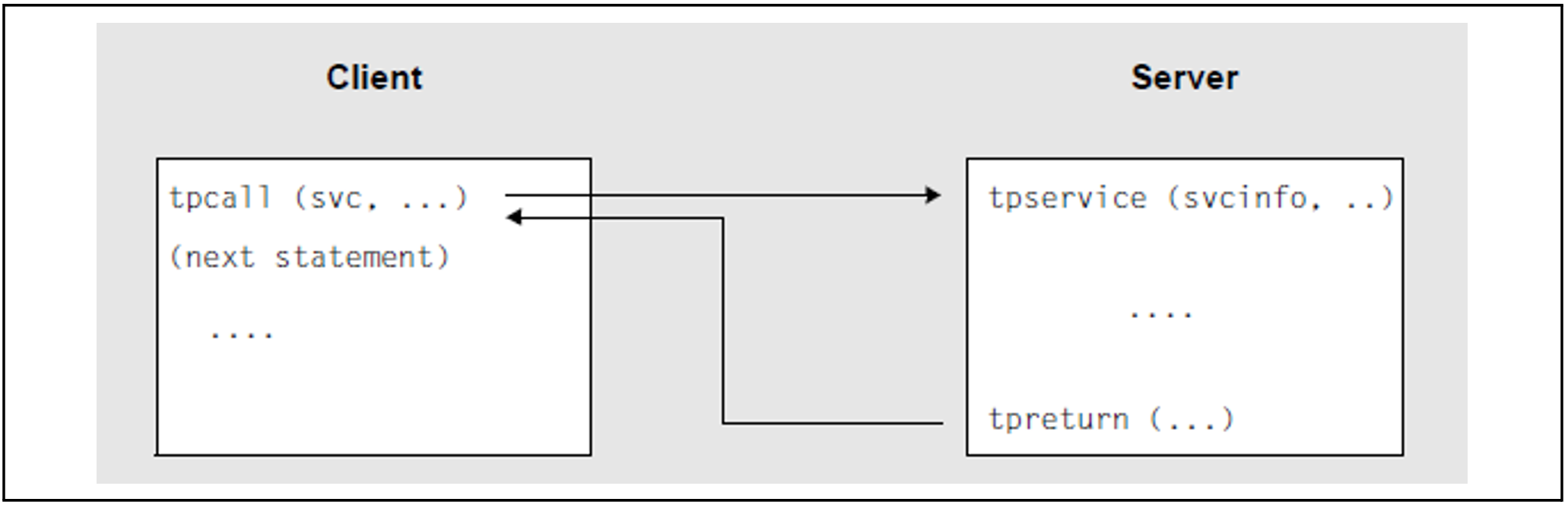 Der tpcall()-Aufruf adressiert den Service, schickt genau eine Nachricht an diesen ab und wartet solange, bis ihn die Antwort erreicht, d.h. tpcall() wirkt blockierend.