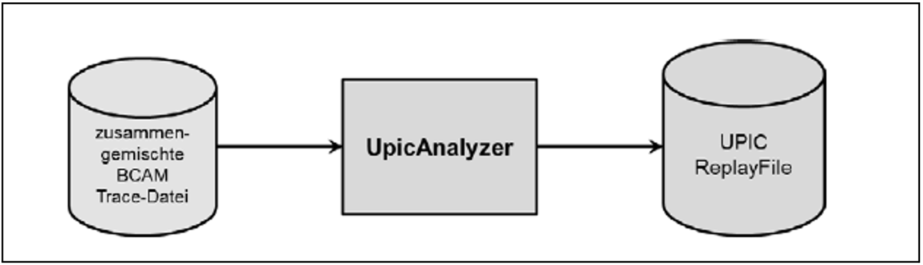 UpicReplay mit UPIC ReplayFile als Eingabedatei, siehe Bild. Details siehe Abschnitt „UPIC-Session mit dem Programm UpicReplay abspielen“.