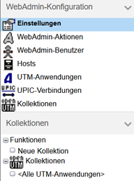 Die "Karteireiter" (Tabs) der einzelnen Registerblätter können auch in einer Dropdown-Box enthalten sein. Dies ist in WebAdmin bei Eigenschaftsseiten von UTM-Anwendungen oder UTM-Clustern der Fall: