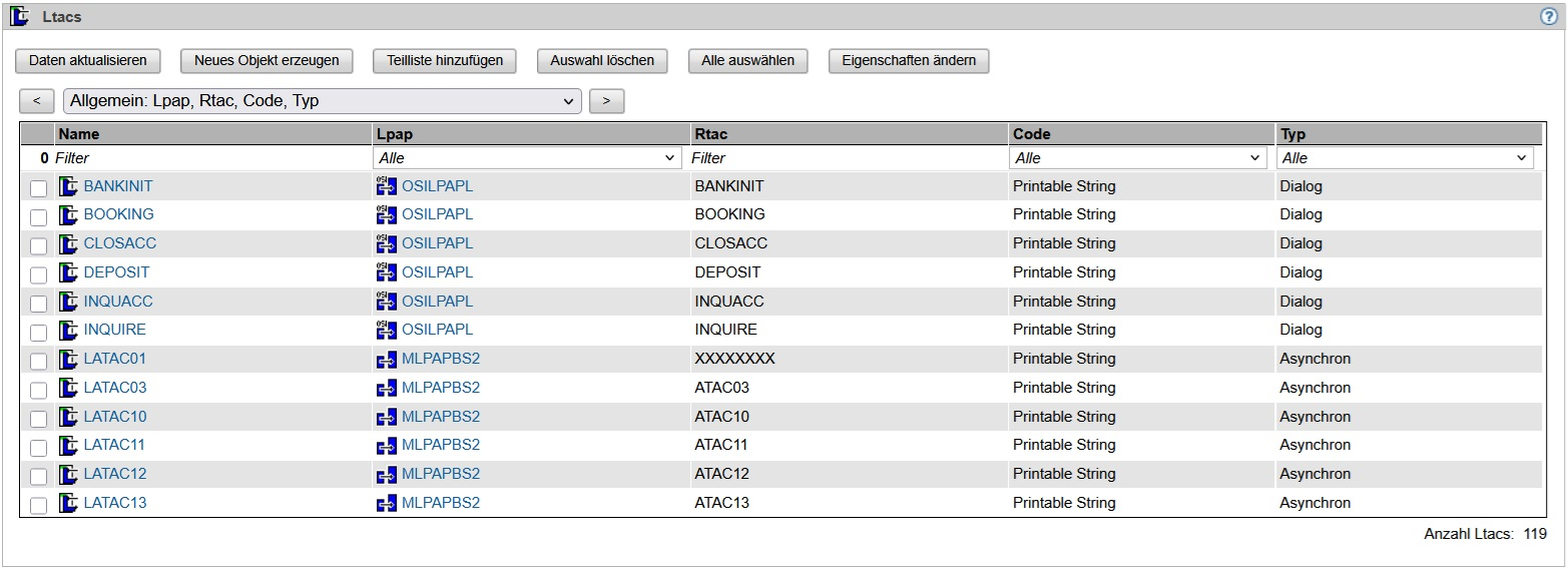 Eine Objektlistenseite enthält alle Objekte mit einem bestimmten Objekttyp in Form einer Tabelle.