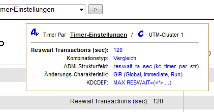 Wenn die Eigenschaft aus einer Datenstruktur der UTM-Administrationsschnittstelle KDCADMI gelesen wurde (dies ist bei den meisten Eigenschaften der Fall), dann ist neben "ADMI-Strukturfeld" der Name des Feldes innerhalb der Struktur und in Klammern der Strukturname angegeben. Aufgrund dieser Angaben kann man die genauere Bedeutung der Werte bei Bedarf leicht im UTM-Administrationshandbuch nachschlagen.