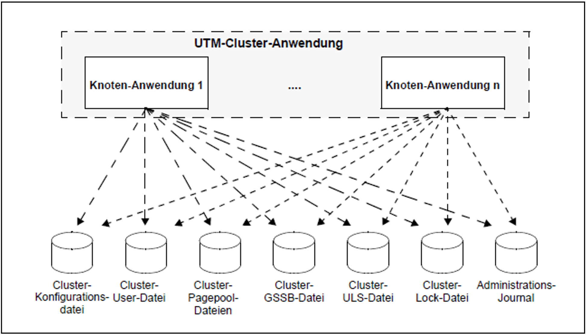 Bild 4: Gemeinsamer synchronisierter Zugriff der Knoten-Anwendungen auf die UTM-Cluster-Dateien