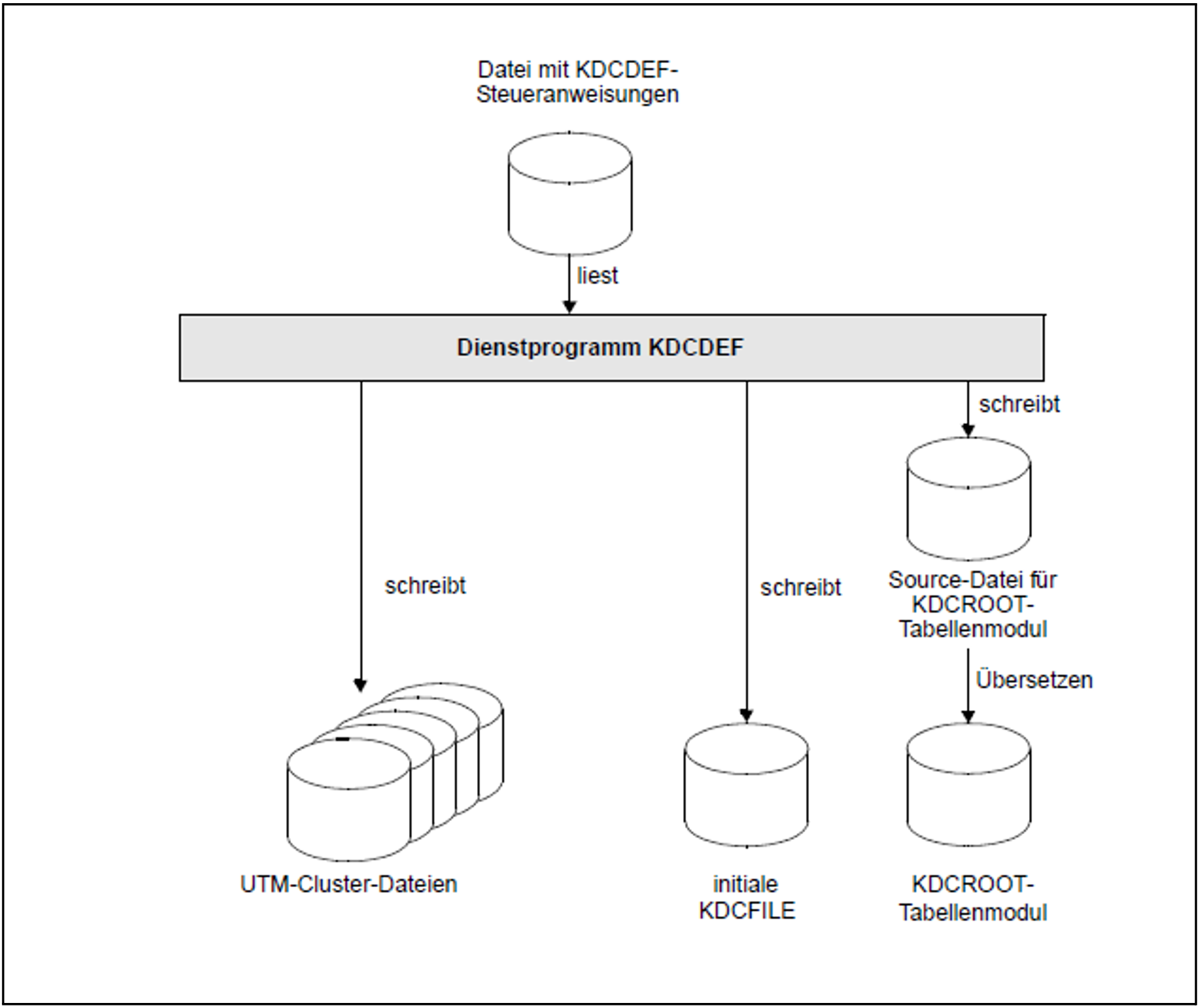 Die Generierung einer UTM-Cluster-Anwendung erfolgt in einem Generierungslauf, in dem das Dienstprogramm KDCDEF folgende Dateien erzeugt: