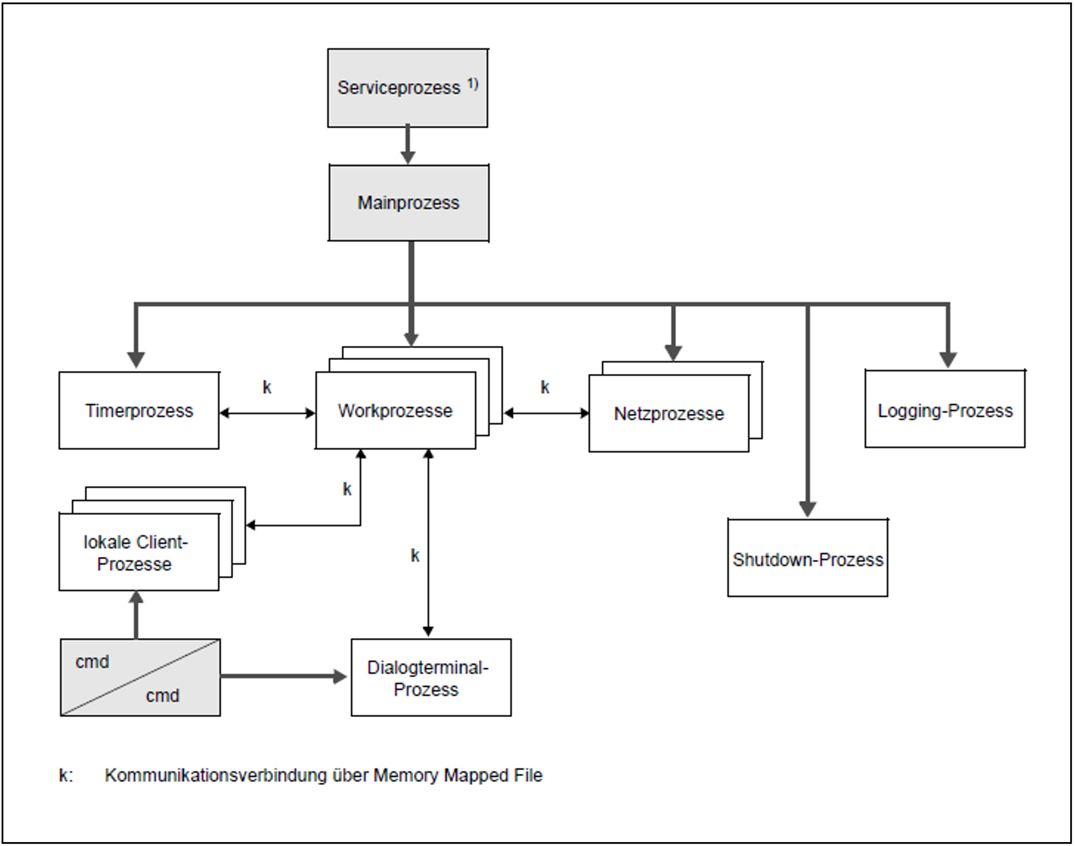 1) Der Serviceprozess ist optional. Er existiert nur, wenn die Anwendung als Dienst gestartet wurde.