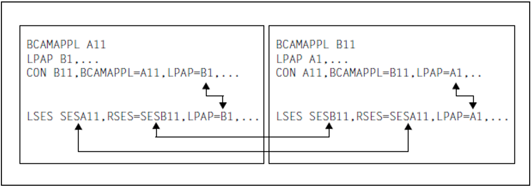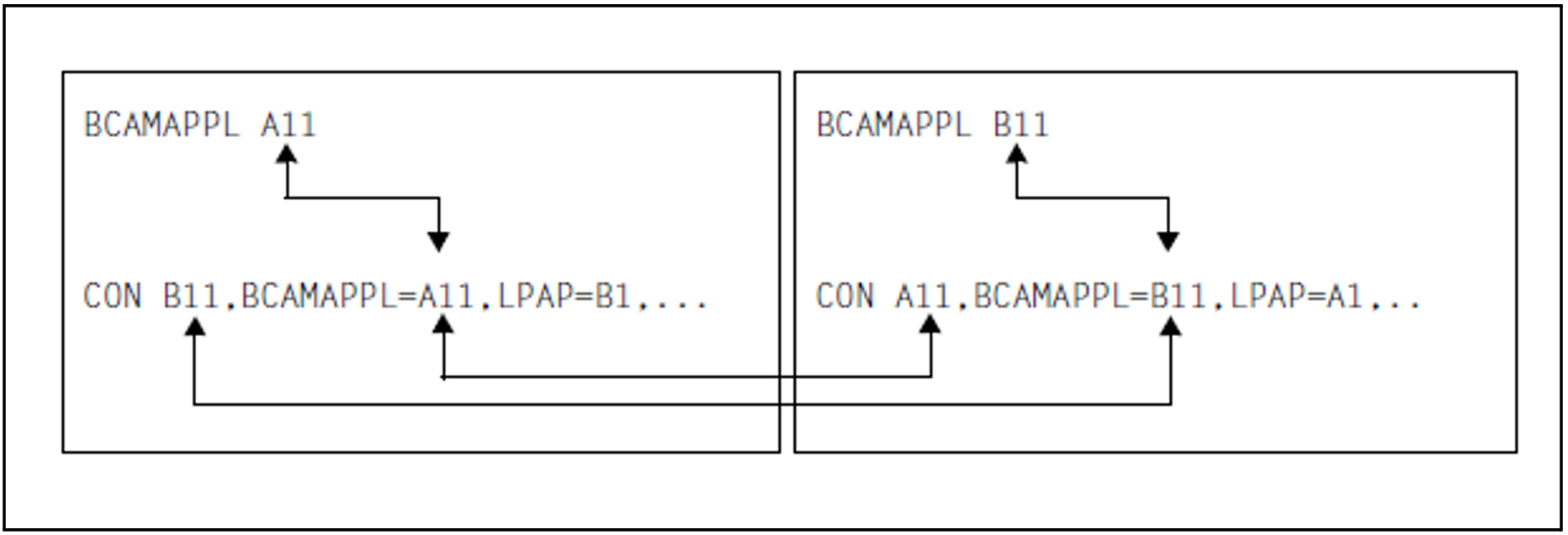LSES SESA14, RSES=SESB14, LPAP=B1CON A11, BCAMAPPL=B11, LPAP=A1