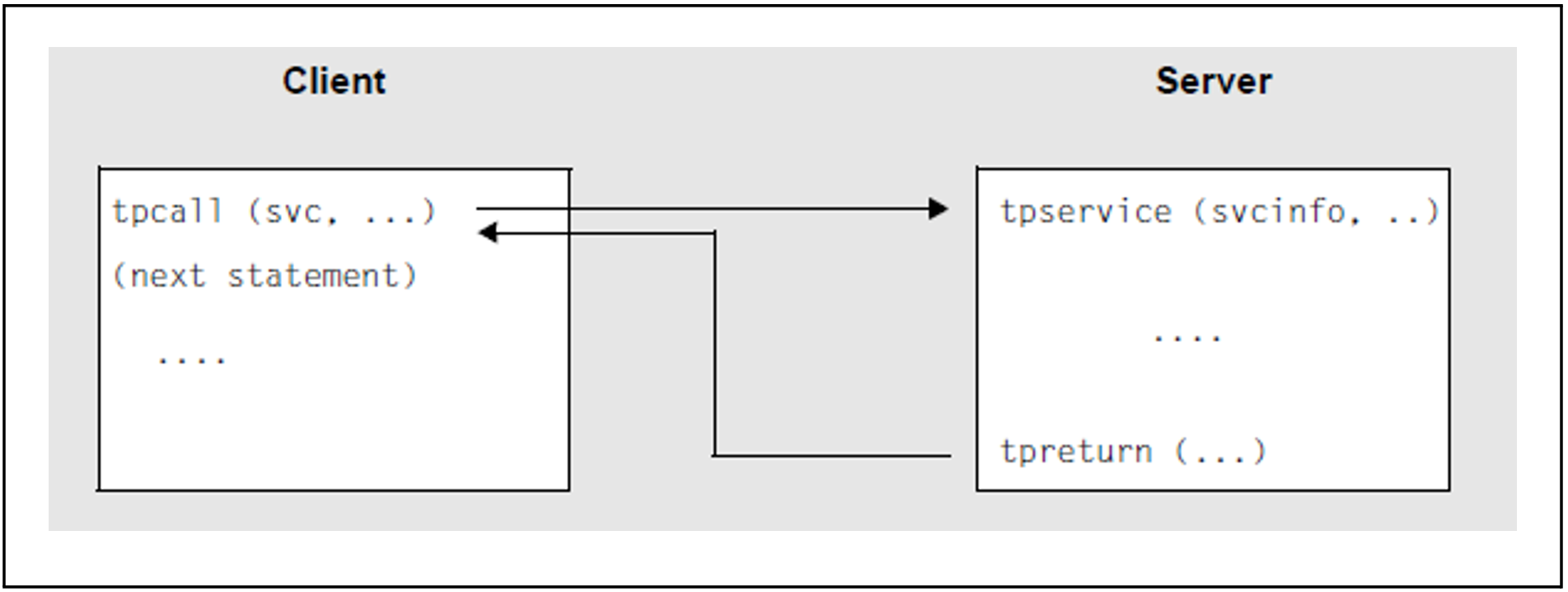 The client only needs one single tpcall() call for the communication.