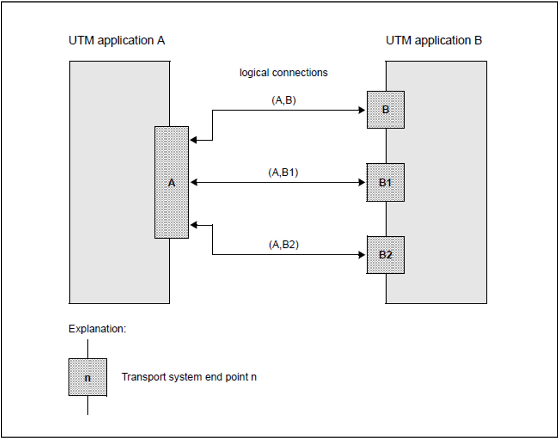 In order to establish several parallel connections between two applications, a UTM application opens several transport system end points at the transport system. Each transport system end point of a UTM application is generated using its own BCAMAPPL statement.