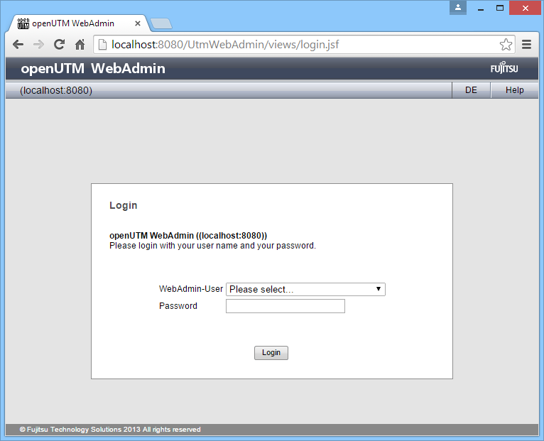 Choose the WebAdmin user that you want to log in as and enter the corresponding password. Then click the "Login" button to open the actual application itself.