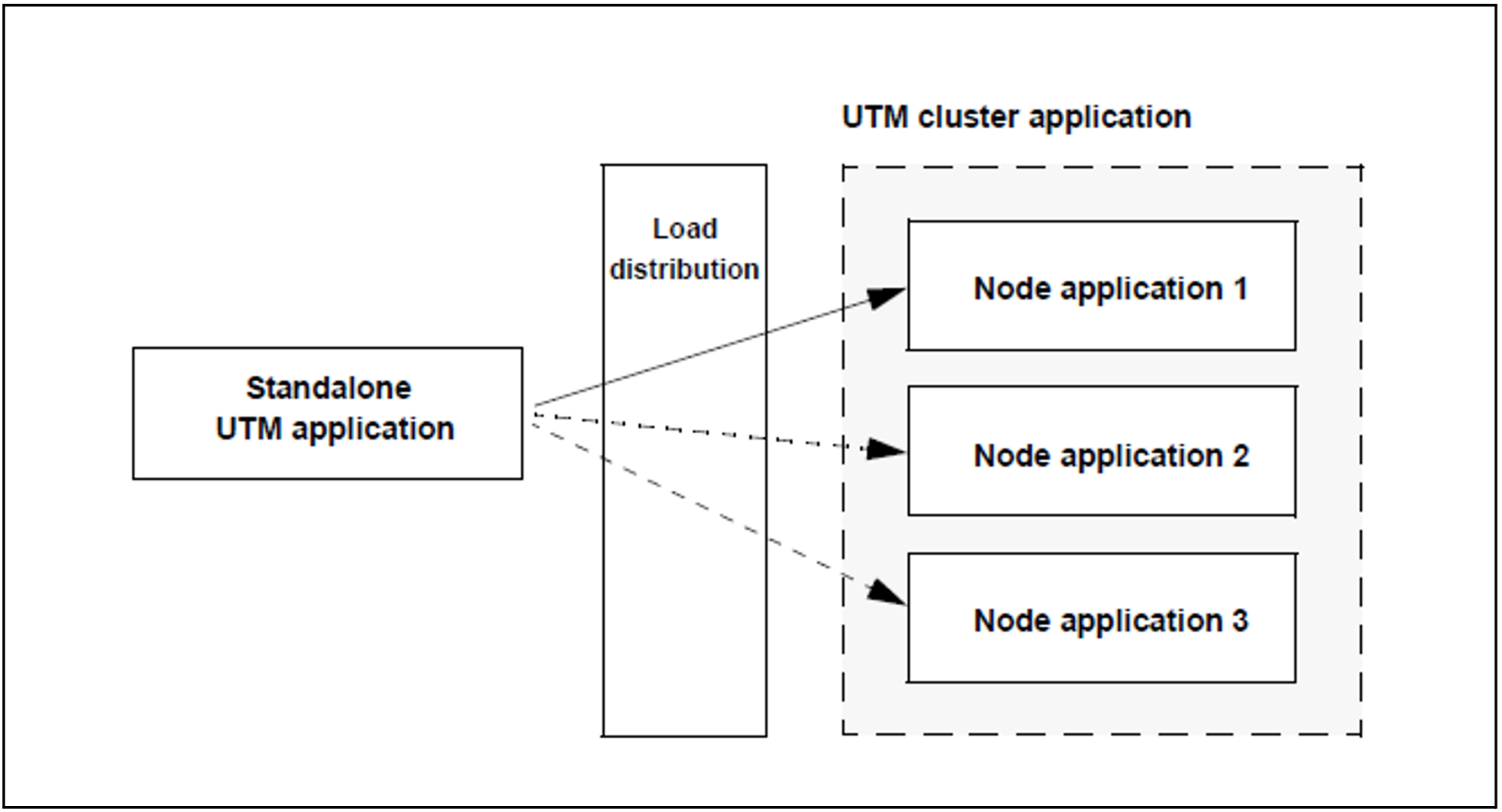 Figure 39: Communication between a standalone UTM application and UTM cluster application with load distribution