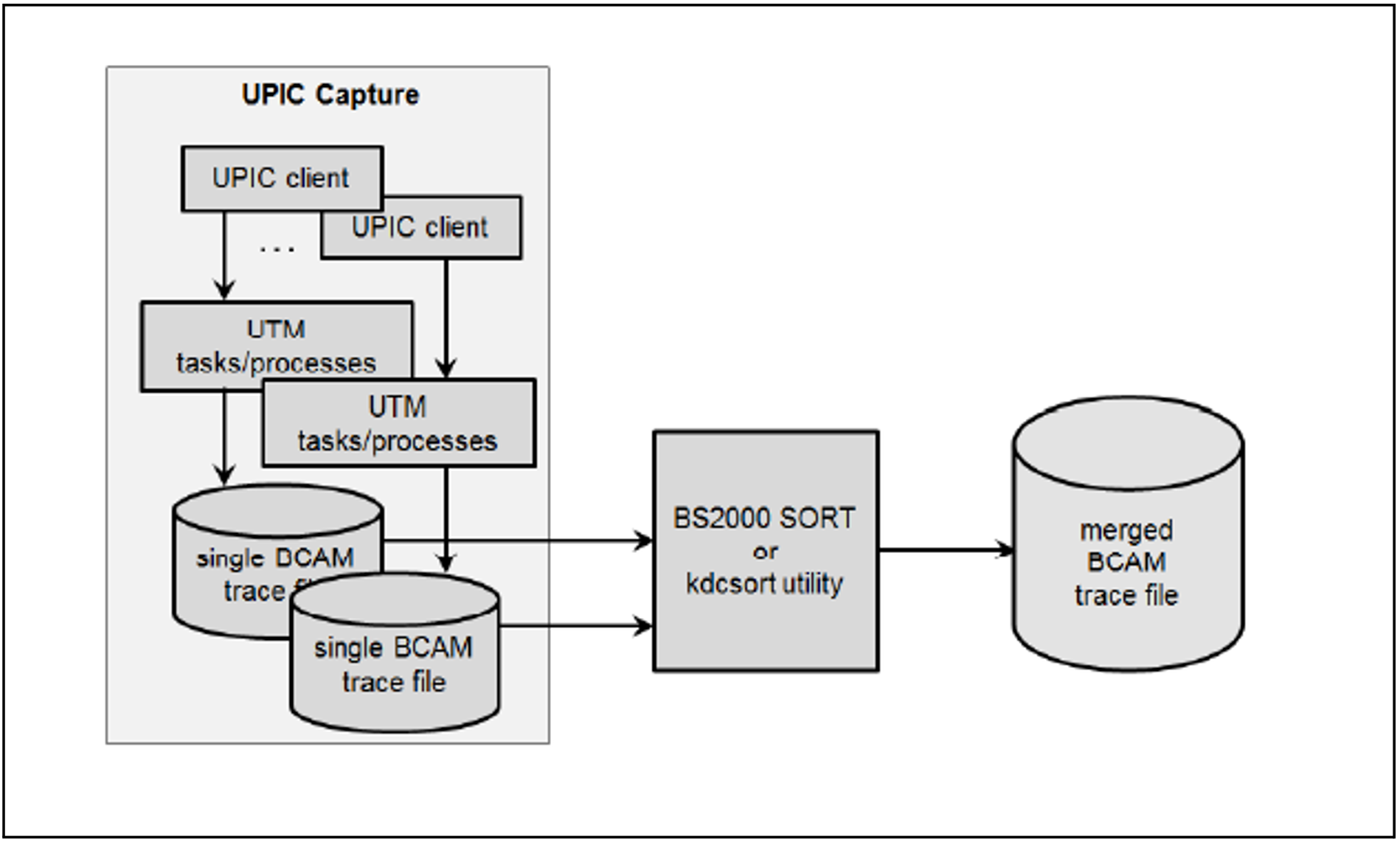 The trace function BTRACE (BCAM trace), which is present on all the server platforms, is used to record UPIC sessions.