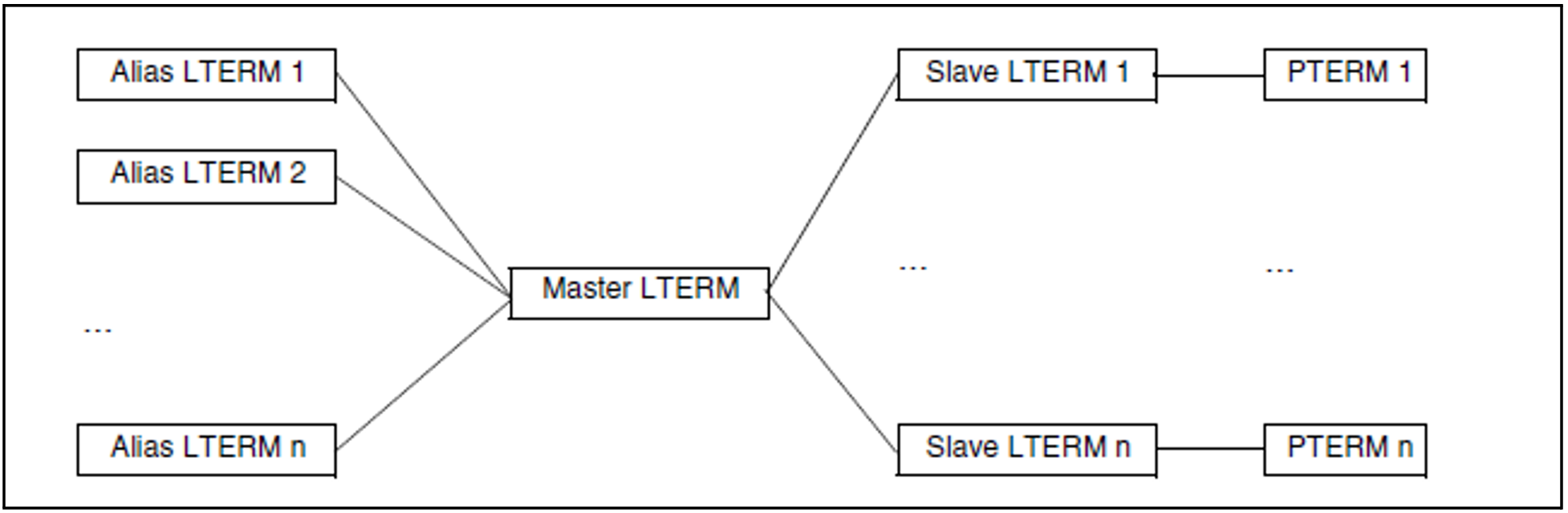 An LTERM group consists of one or more alias LTERMs, called the group LTERMs, and one primary LTERM. You define the group LTERMs using LTERM statements as described in the section "Connecting clients via LTERM partners". Do not assign a PTERM to a group LTERM.