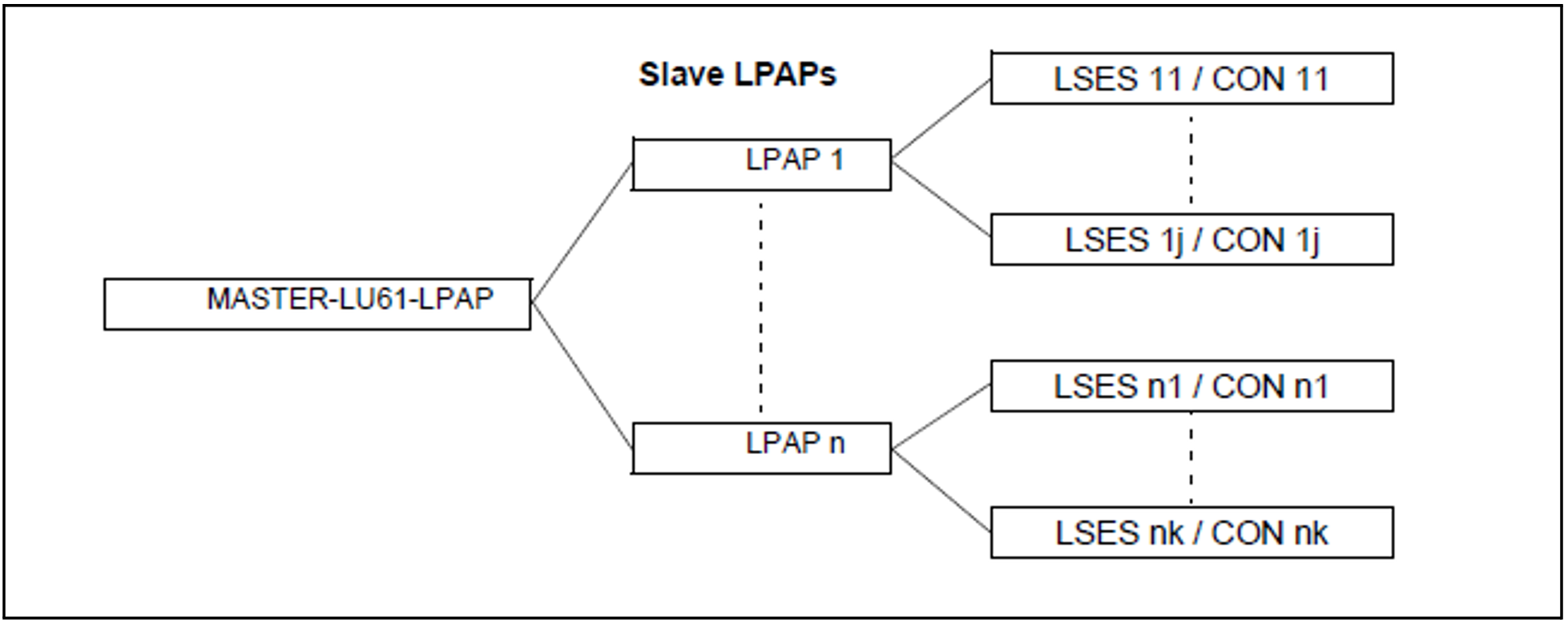 No physical connections (CONs) can be assigned to a master LPAP. This means that it cannot be specified as the LPAP in a CON statement. The master LPAP always uses the connections assigned to the slave LPAPs.