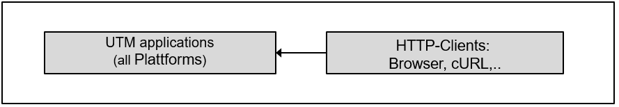 A UTM application can act as an HTTP server and communicate with HTTP clients. This allows a UTM application to offer its services to the outside world and any HTTP clients, such as browsers or e.g. cURL clients, can access these services.