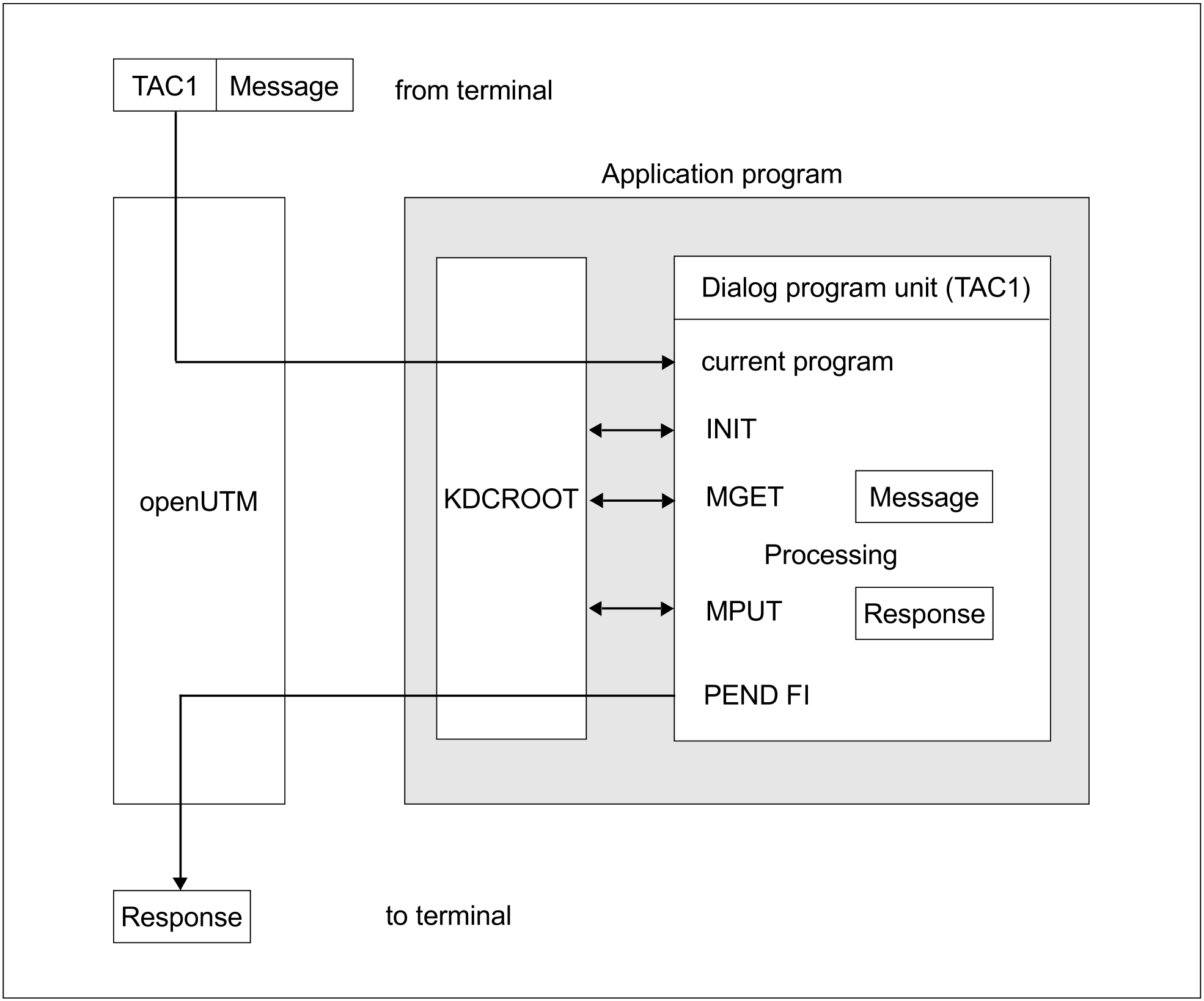 openUTM requires a "strict dialog" for dialog program units, i.e. each message input must be followed by a message output specifying the result or an error message.