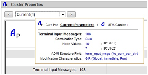 Tooltips that provide more information about the displayed object properties can pop up on the property pages of UTM objects. This is particularly helpful for global cluster property pages because the property values of the individual node applications are also shown in the tooltips.