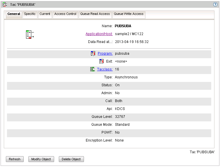 Below the sheets you will generally find the 'Refresh' and 'Modify Object' buttons, and sometimes also 'Delete Object'. There may also be other buttons for accessing object-specific functions.