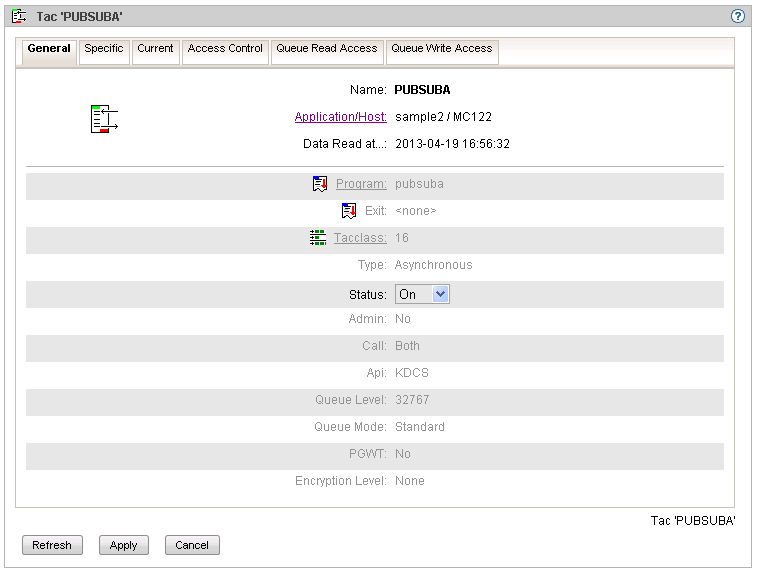 In Edit mode, only the 'Refresh', 'Apply' and 'Cancel' buttons appear.