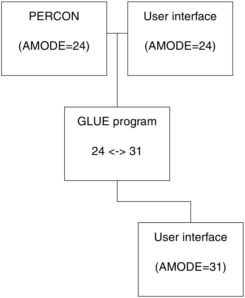 Irrespective of the addressing mode, PERCON uses the 31-bit system interface (PARMOD=31). For this reason a 31-bit file control block (FCB) is offered for label processing in the case of user interfaces.