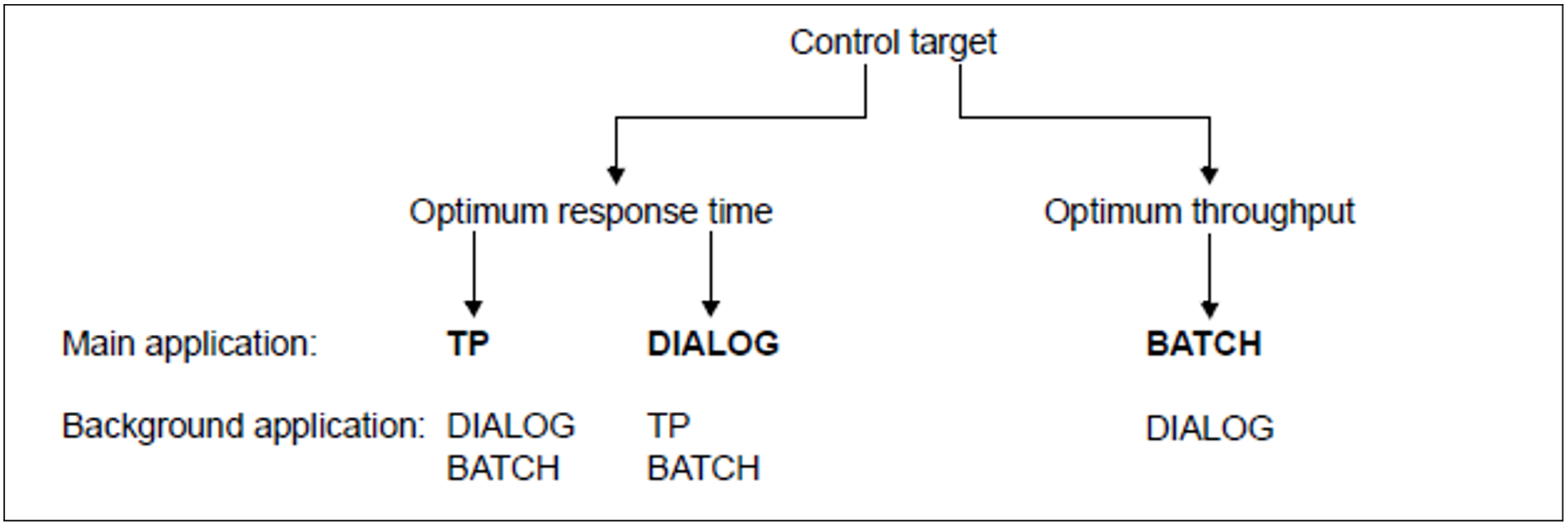 On the other hand, TP applications react more sensitively to background jobs, especially where paging is involved. This sensitivity is even more pronounced the fewer the number of tasks which are responsible for processing the application. The TP application is regarded as the main application if the number of TP transactions is greater than or equal to 50% of the total number of transactions.