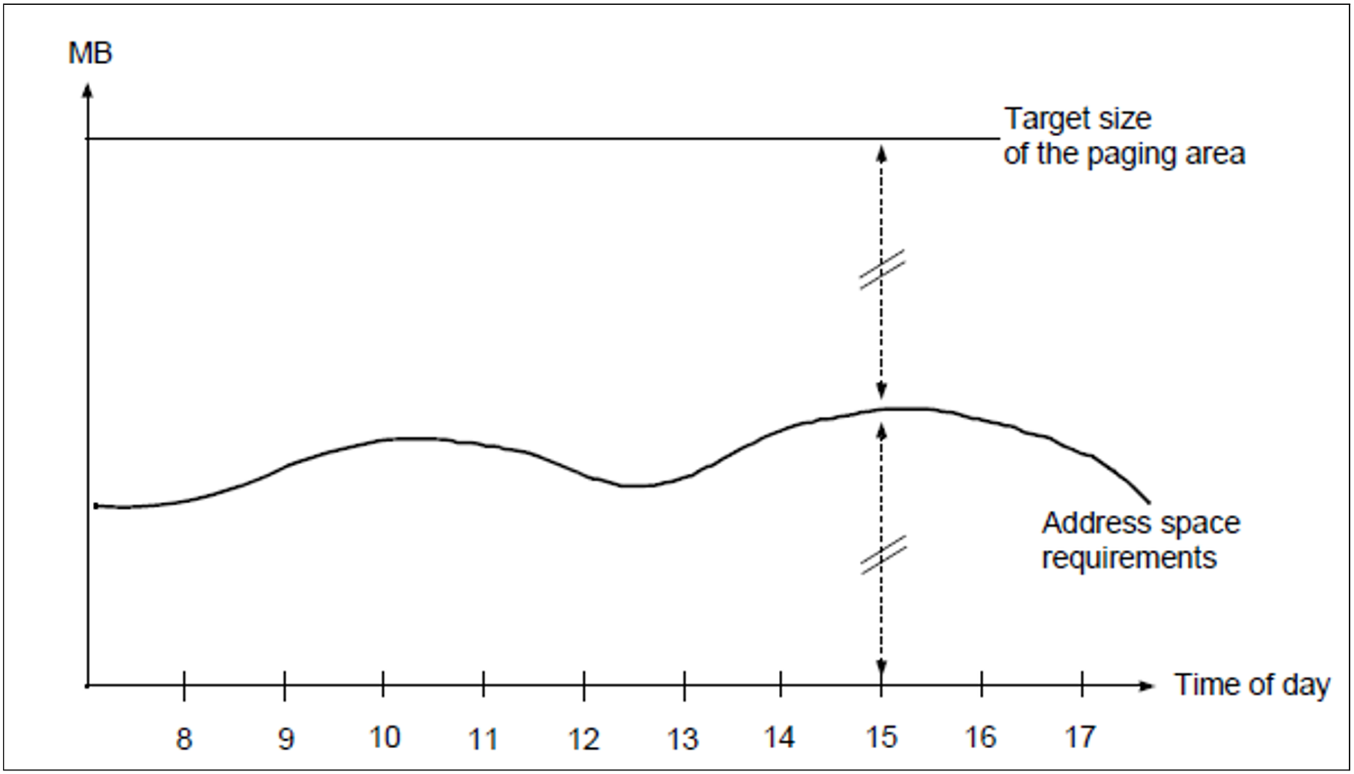 The size of a paging area depends on the number of programs executing simultaneously and their virtual size. To this must be added the system address space currently generated.