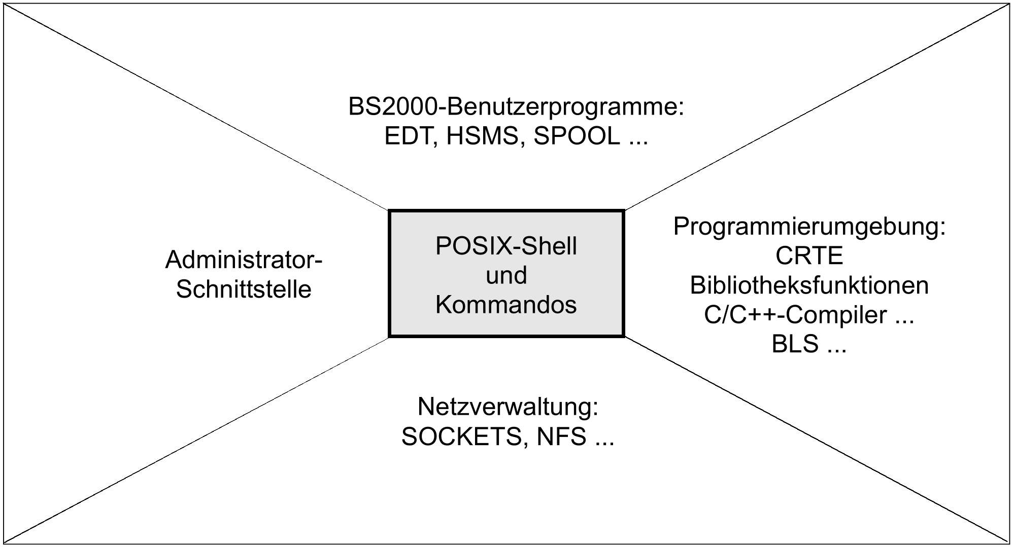Die POSIX-Shell ist eine Kommandoschnittstelle, die Sie zusätzlich zur Kommandoschnittstelle des BS2000 verwenden können (siehe Bild 2).