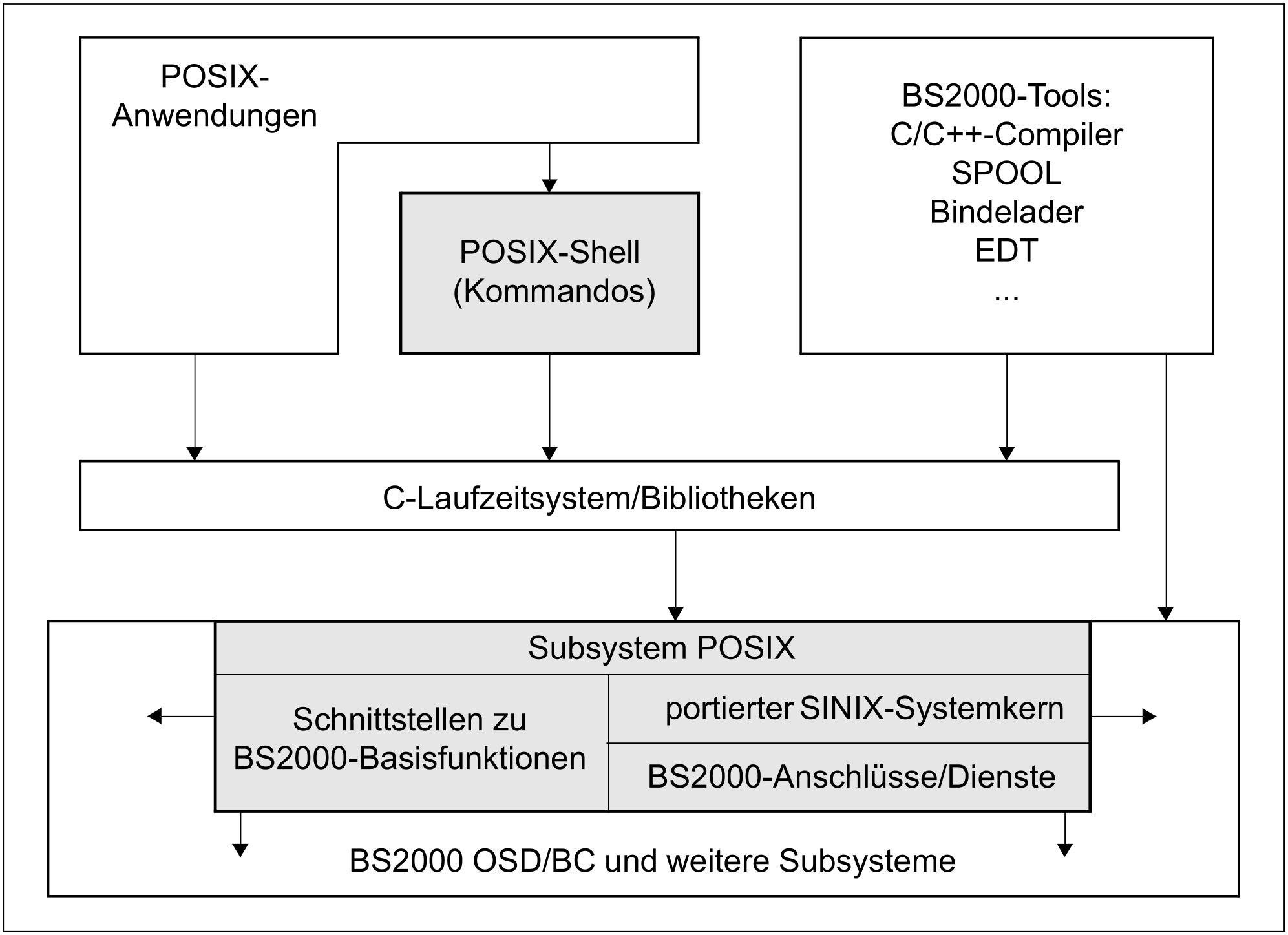 Bild 1 zeigt die Struktur von POSIX im BS2000 und die Einbettung der POSIX-Shell.