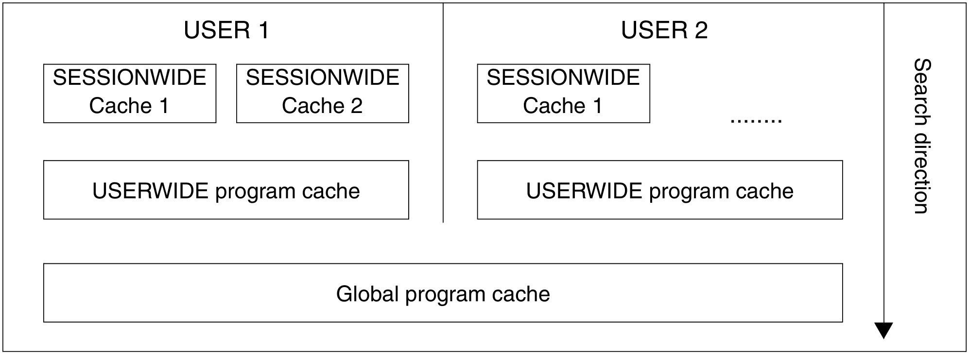 Does a program cache exist for the session or for the user, or does a global program cache already exist? Is the corresponding program core image stored in the cache?