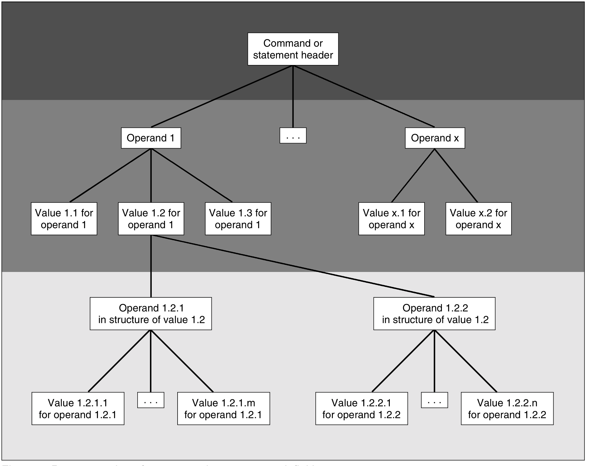 At least one operand value must be defined for each operand. This also applies to the case where an operand with a default value is masked out at the user interface for the command or statement. If there is a structure (see the glossary at the back of the manual) linked to an operand value, the structure is defined globally in the definition of the operand value. In addition, there is