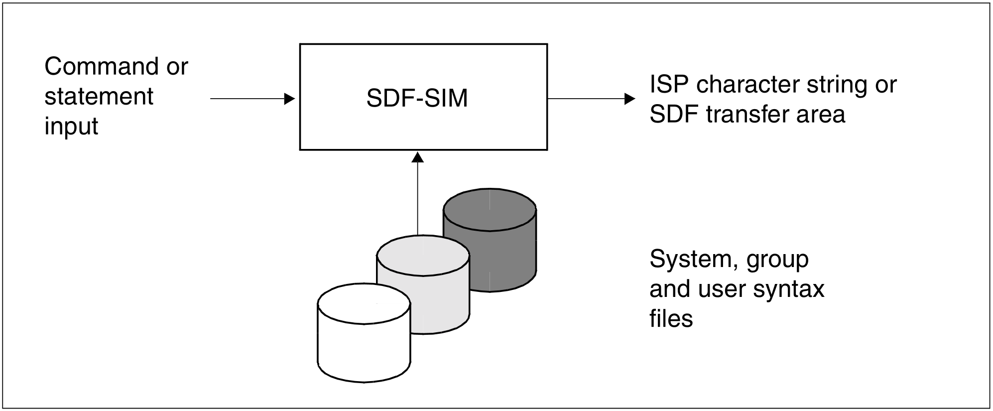 SDF-SIM can be used to simulate an environment in which the syntax of commands and statements is analyzed. This environment is not dependent on the BS2000 system environment and a user who is not equipped with any special privileges can exert a considerably greater influence on it than is normally possible (e.g. as regards assigning system and group syntax files).