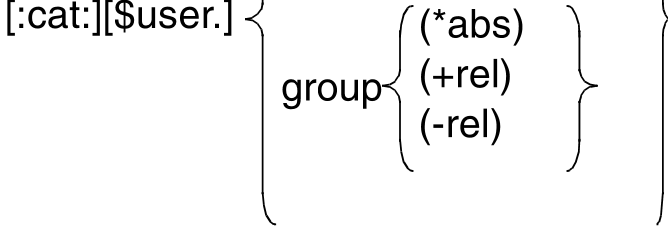 filename (continued) | | file(no) Tape file name no: version number; character set is A...Z, 0...9, $, #, @. Parentheses must be specified. group Name of a file generation group (character set: as for "file")  (*abs) absolute generation number (1..9999); * and parentheses must be specified. (+rel) (-rel) relative generation number (0..99); sign and parentheses must be specified. |