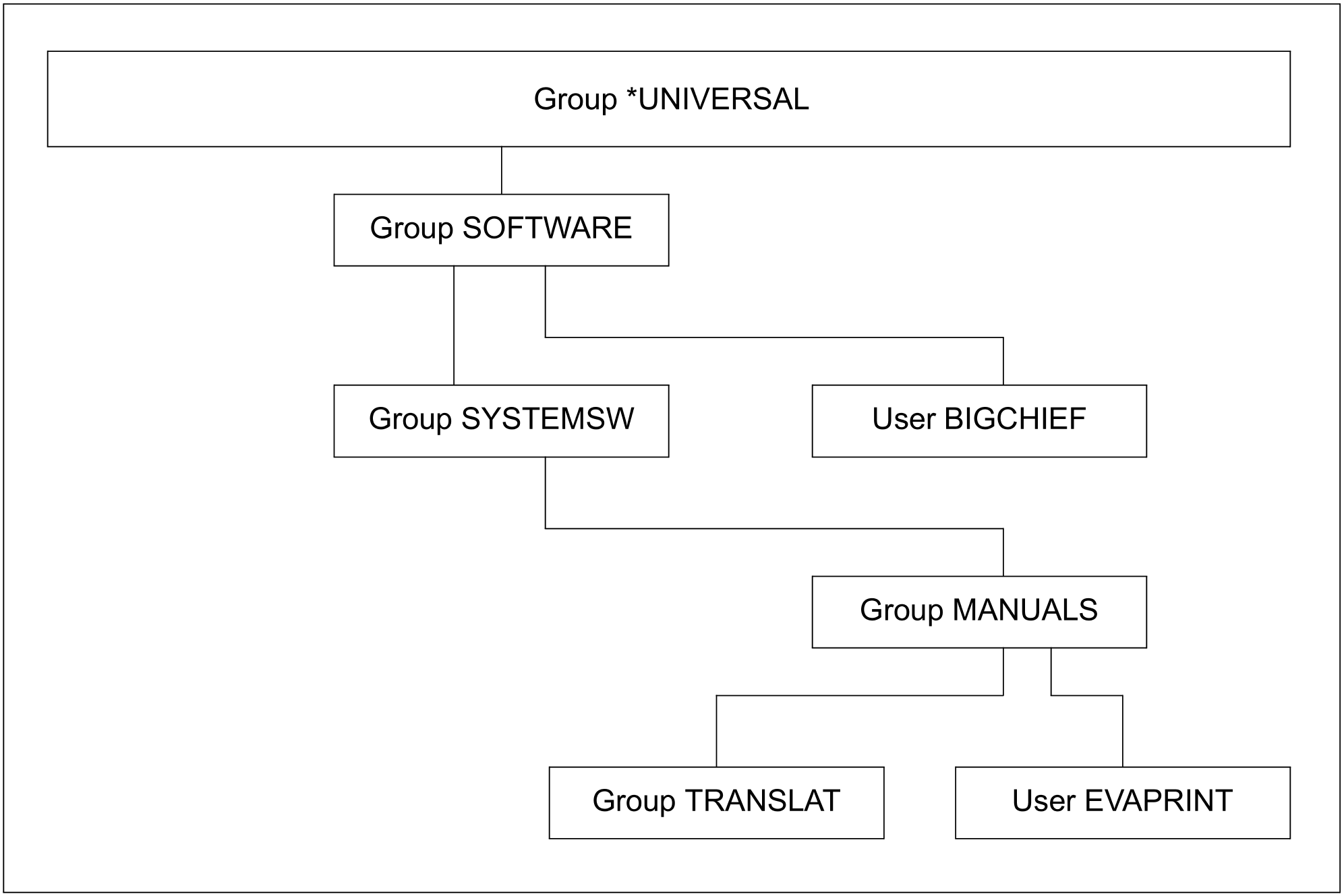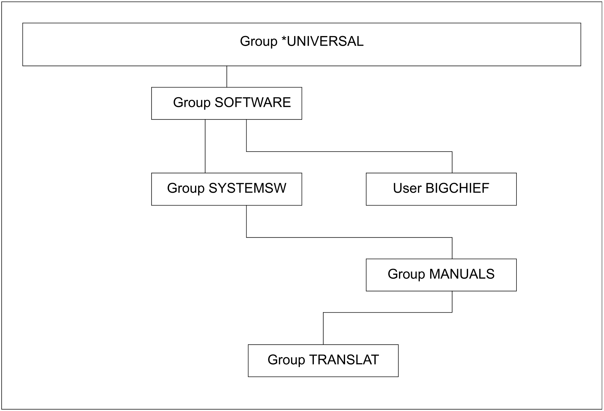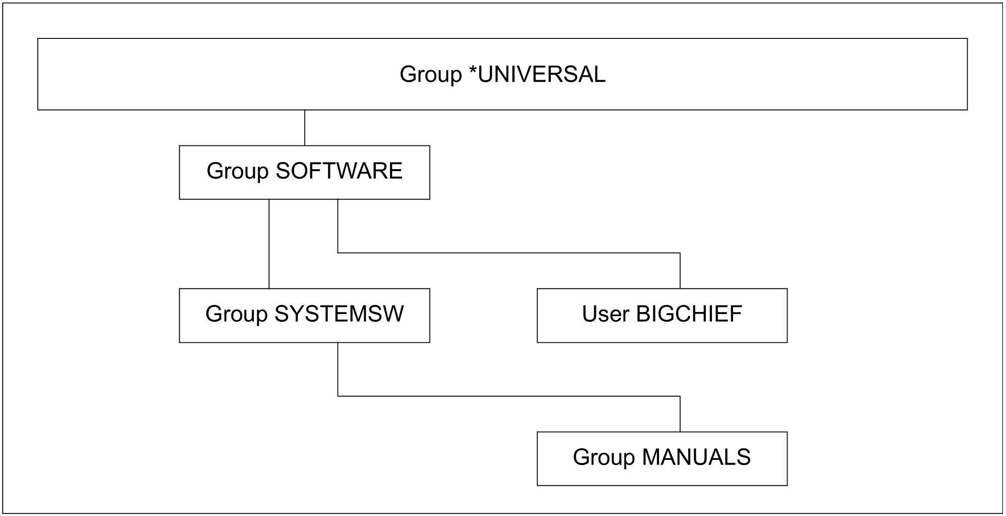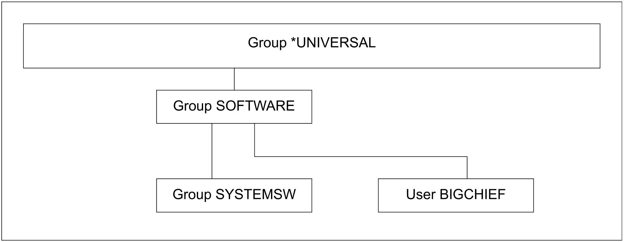 Die Kennung BIGCHIEF ist Gruppenverwalter der Gruppe SOFTWARE. Unterhalb der Gruppe SOFTWARE wird die Gruppe SYSTEMSW eingerichtet.